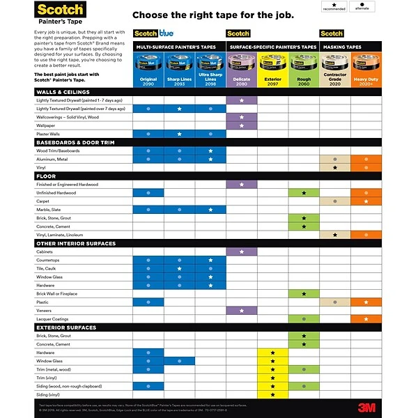 Scotch Rough Surface Painter’s Tape has a very strong adhesive designed for performance on rough, non damageable surfaces. Use on brick, concrete, stucco, or rough wood for the protection you need to get the job done. Scotch Rough Surface Painter’s Tape is recommended for use with or on lacquer coatings. This tape holds to surfaces for up to 5 days and then removes easily without leaving any sticky residue behind.