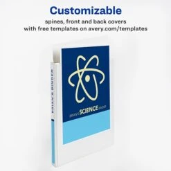 The Avery 175-sheet vinyl binder contains 50 percent recycled post-consumer waste and is PVC-free, making it a greener product choice, ideal for earth-conscious consumers and green offices. With clear overlays on the front, back and spine, this binder lets consumers insert customized back covers, title pages and spine cards for a professional finish that also ensures easy identification and reference.