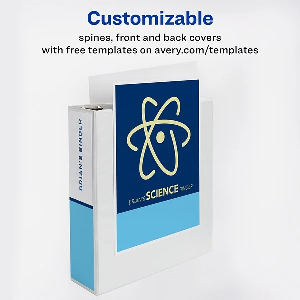 Discover sturdy simplicity in a convenient and lightweight package. This Economy View Binder’s 3″ round rings hold up to 46 pages of 8-1/2″ x 11″ paper to offer a handy solution to your organization needs. Open and close the rings with ease to add or remove papers as needed. Tuck important handouts, pamphlets and other loose or unpunched paperwork into the two interior pockets for quick access. Put your personal stamp on the binder by designing a customized cover. You can find inspiration in the free, easy-to-use templates available at avery.com. Perfect for light use, this slim binder is the friend your papers never knew they were missing.