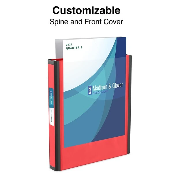 - Insert a custom removable spine label for easy identification of the contents