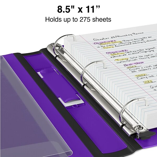 Enjoy efficient storage options with this Staples Better 1-inch view binder. This binder’s 1-inch D rings comfortably hold up to 275 sheets and ensure that pages can lie flat for easy reading and writing, while the reinforced rubberized spine resists tearing. This Staples Better 1-inch view binder can be personalized with custom inserts on both covers and the spine.