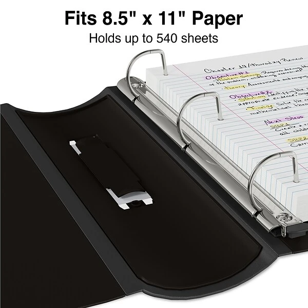 Secure unpunched papers with this Staples Better 2-inch three-ring view binder. This binder is made with nonstick archive-safe material that doesn’t lift toner from printed pages to keep papers looking clean and professional, while the 2-inch rings let you store up to 540 sheets. This Staples Better 2-inch three-ring view binder is made with a heavy chipboard and premium vinyl, making it reliably sturdy. Durable Exterior – Each 2-inch Staples Better view binder begins with a heavy-duty material that’s both rigid and lightweight. This material is then machine sealed inside a layer of nonstick premium vinyl, with special attention given.