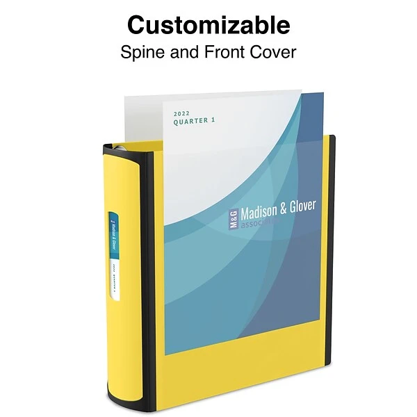 - Insert a custom removable spine label for easy identification of the contents