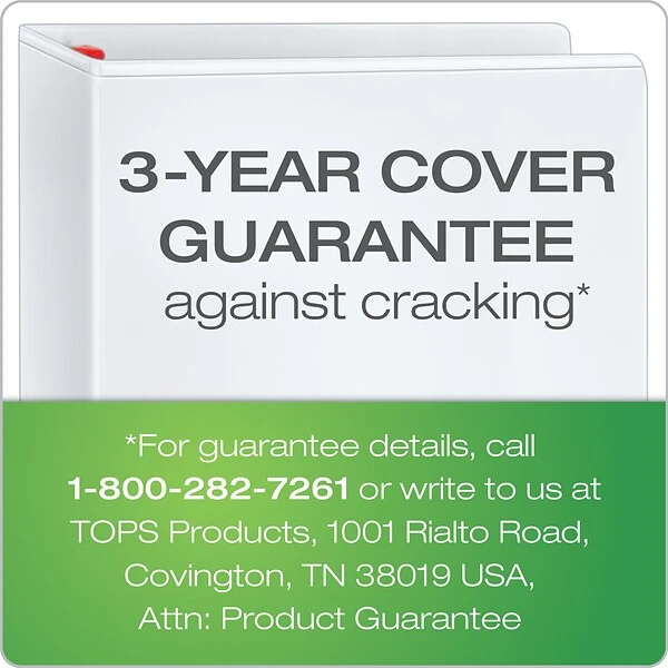 Enjoy the long service life of this Cardinal XtraLife binder. Made from high-quality materials to prevent splitting and tearing, this binder features tough XtraLife hinges to hold up to the rigors of regular use. This binder has been tested to -50°F to assure durability and reliability in frigid conditions. For your peace of mind, the cover comes with a three-year guarantee against splitting and tearing, while the binder has a one-year guarantee against splitting along the seams or the hinge.
