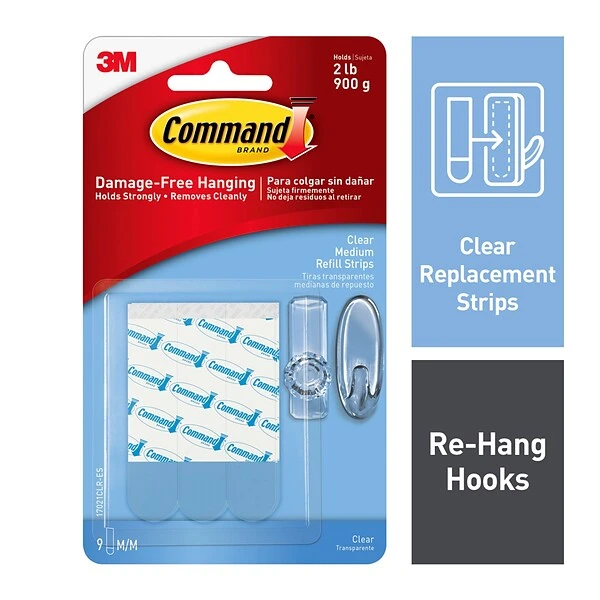 - RE-HANG HOOKS: Redecorate when inspiration strikes! Command Clear Medium Refill Strips make it easy to hang and rehang your Command Clear Medium Indoor Hooks, damage-free!