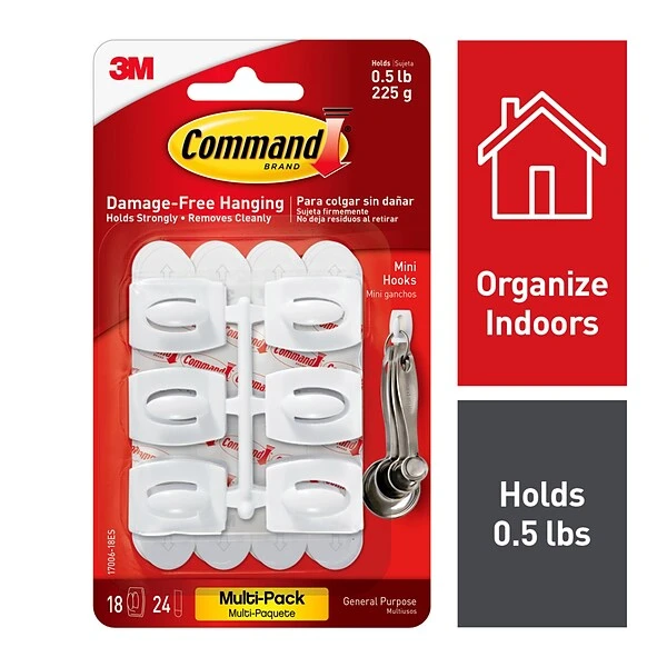 - INCLUDES – 18 white hooks, 24 mini strips; 1 hook holds 0.5 lbs