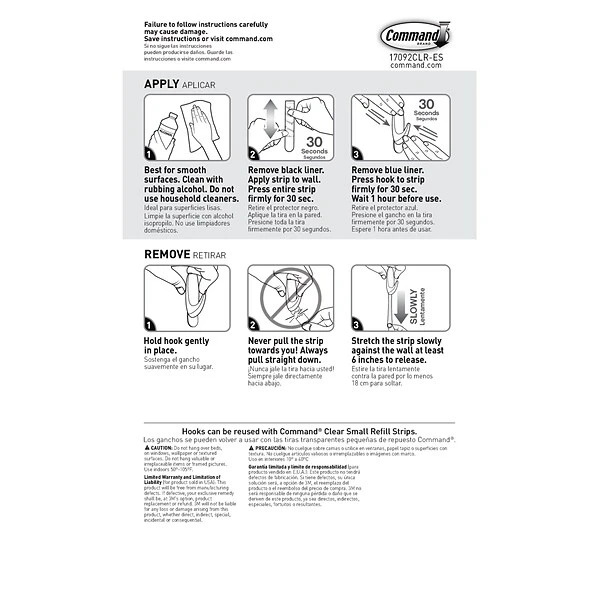 The revolutionary Command™ Clear Adhesive Strip adhere firmly to many surfaces, including paint, wood, tile and more. Yet, come off leaving no holes, marks, or sticky residue. Command™ Clear Hooks and Strips blend in seamlessly allowing you to show what matters most, your decor, not how it’s hung up. Rehanging them is as easy as applying a Command™ Clear Refill Strip, so you can take down, move and reuse them again and again!