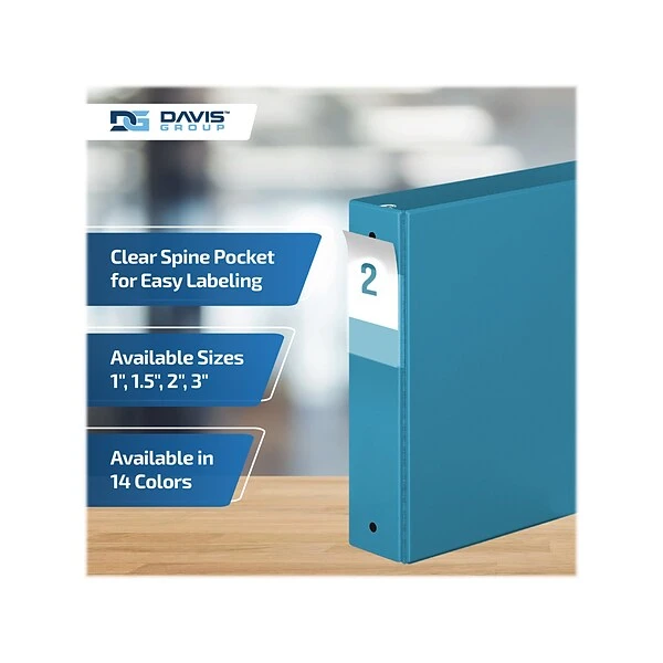 This Davis Group Premium Economy binder features a clear interior pocket on the front and back covers to secure loose documents and allow for easy identification of contents. Perfect for conferences, references, colleges, and universities. Features a full-width label holder on the spine. Made of PVC-free polypropylene for enhanced durability. 100% recycled board with 85% post consumer waste.