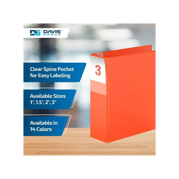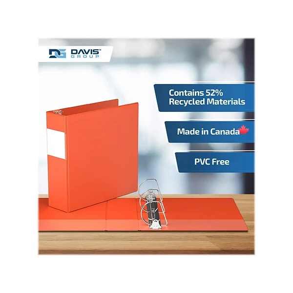 This Davis Group Premium Economy binder features a clear interior pocket on the front and back covers to secure loose documents and allow for easy identification of contents. Perfect for conferences, references, colleges, and universities. Features a full-width label holder on the spine. Made of PVC-free polypropylene for enhanced durability. 100% recycled board with 85% post consumer waste.