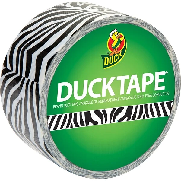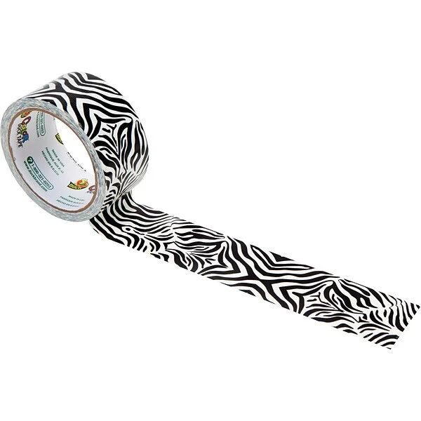 Duck Tape® 1.88″ x 10 yds Brand duct tape with zig-zag zebra print has adhesion characteristics and is used for resourceful repair, decorating as well as fashion medium. Durable tape can be torn easily by hands and bonds quickly to uneven surfaces.