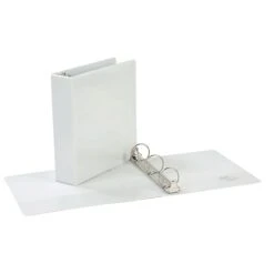 Clear overlay for customization on all three sides. PVC-free, non-stick material will not damage contents. Clear pockets on the inside front and back covers are ideal for storing loose documents. Back mounted round rings provide a cleaner look. Holds 8 -1/2″ x 11″ sheets. 2″. White. 475 sheet capacity. Sold as 12 per pack.
