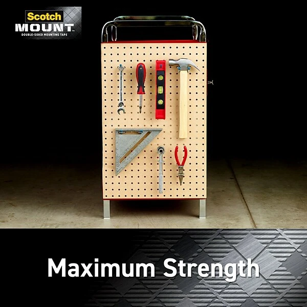 For your toughest jobs, go for our strongest hold–Scotch™ Extremely Strong Mounting Tape. Equipped with our powerful permanent adhesive, this double sided tape defies gravity, holding an item up to 20 pounds. It’s weather resistant for a long lasting bond, indoors and outdoors. So whether you’re mounting artwork in your new apartment, or adding wall organization to the garage, Scotch™ Extremely Strong Mounting Tape does the job quickly, easily and without the hassle of tools.