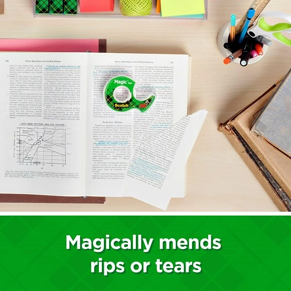 Scotch® Magic™ Tape works as hard as you do to fix all the little imperfections at home, school and the office. The Scotch® Brand’s famous matte finish invisible tape uses unique 3M adhesive technology to bond tightly with paper and disappear without a trace. Write on it with pencil, pen or marker every word is loud and clear. Scotch® Magic™ Tape: Always ready for big ideas and everyday mends.