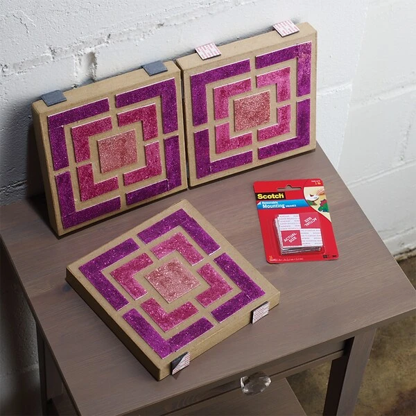 Scotch® Mounting Squares are pre-cut squares of adhesive. For mounting photos, posters, artwork or papers on walls, office cabinets, refrigerators, windows, etc. Use on wood, tile, painted walls, glass, and most other wall surfaces that are clean, dry and smooth.