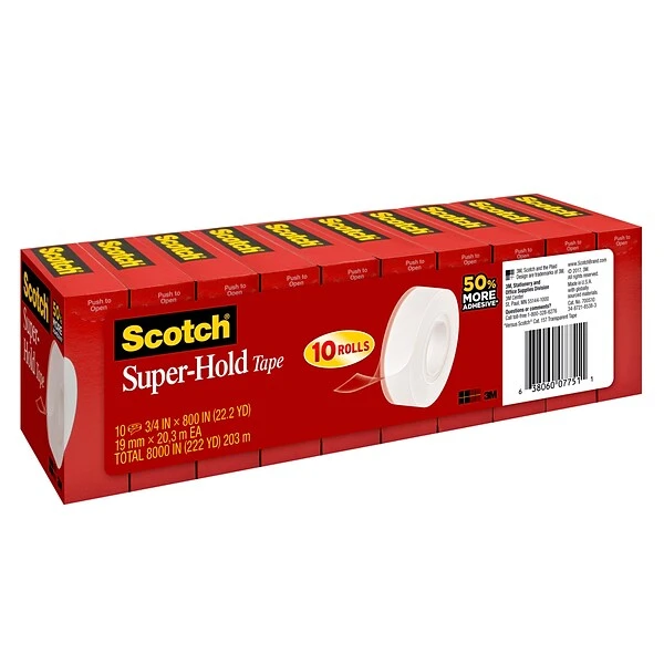 Fix life’s unexpected mishaps with the powerful adhesion of Scotch® Super-Hold Tape Dispenser Refills. An essential to have on hand from your home to the office, this tape is made with 50% more adhesive than our standard transparent tape (Versus Scotch® Cat. 157 Transparent Tape).