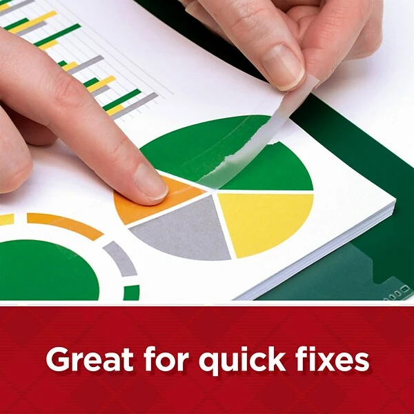 From sealing envelopes to making quick fixes on the fly, rely on the powerful bond of Scotch® Super Hold Tape. Designed with 50% more adhesive, this innovative tape offers a stronger bond than our standard transparent tape (Versus Scotch® Cat. 157 Transparent Tape). The thicker backing delivers outstanding durability when a secure, lasting hold is essential. Virtually crystal clear, this tape holds strong without standing out–perfect for repairs, mounting, crafts and more. The convenient dispenser fits comfortably in your hand and lets you unroll and cut your desired amount with ease. Whether you’re concealing confidential documents, sealing a small care package, trust what matters to you to the superior adhesion of Scotch® Super Hold Tape.