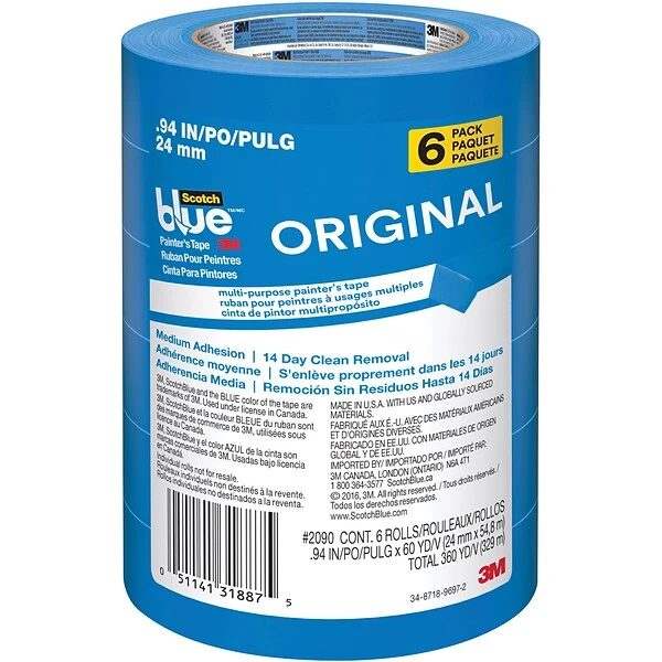 It is a medium adhesion tape that is ideal for painted walls and trim, woodwork, glass and metal.