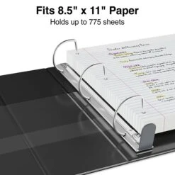 Access documents and paperwork conveniently using this Staples Standard green D-ring binder. The back-mounted rings allow papers to lie flat and prevent gapping, making page-turning smooth and tear-free. This Staples Standard green D-ring binder has oversized panels, providing extra coverage for tabbed dividers, sheet protectors, and other accessories, and the interior has two pockets for convenient access to unpunched documents.
