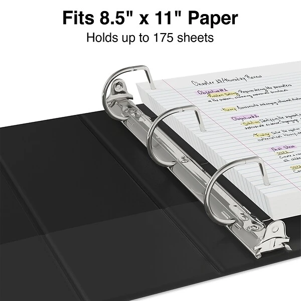 Store and update notes or reference documents with this Staples 1-inch D-ring standard view black binder.