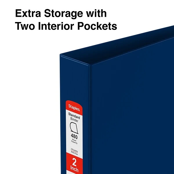 Protect papers by storing them in this Staples Standard 500-sheet-capacity 2-inch D-ring blue binder.