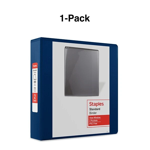 Safely store stacks of papers with this Staples standard 500-sheet-capacity 2-inch D-ring blue view binder.