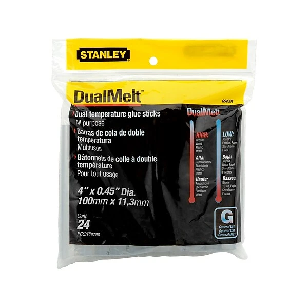 Attach project materials to each other or to a display base with these 4-inch glue sticks. The 0.45-inch diameter fits into your GR25 or GR100 glue gun for reliable performance under standard conditions. These Stanley glue sticks come in a pack of 24 to ensure a continuous supply while you work.