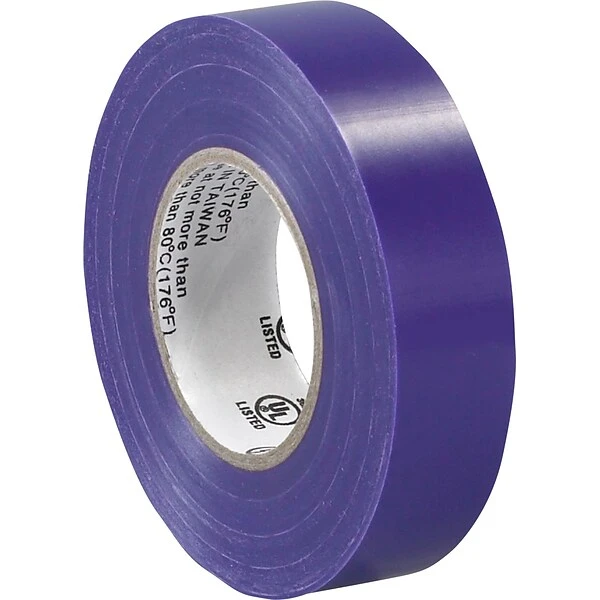 Tape Logic™ Vinyl electrical tape in purple color measures 3/4″ x 20 yds. Tape is used as a protective jacket for high voltage cable splices and repairs and is sold as 10 per case.