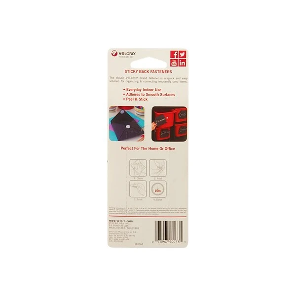 Secure white boards, calendars and other items to desks, walls and various other surfaces with these white squares. These VELCRO Brand sticky back squares come in a pack of 12, work best on smooth surfaces and feature a strong adhesive, making them great for use both indoors and outdoors.