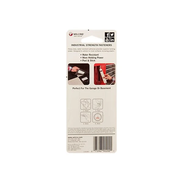 Hang clocks, wall charts, framed art or other heavy items with these industrial strength strips. With an adhesive that sticks to most surfaces and a water-resistant finish, these VELCRO industrial strength strips are suitable for indoor and outdoor use.